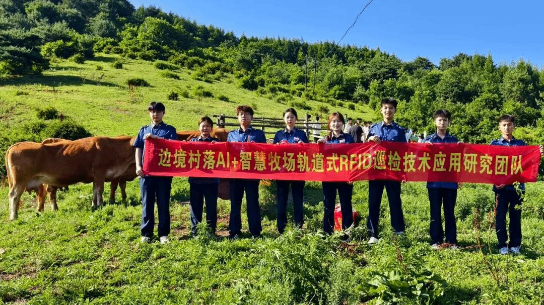 轨道交通学院实践团成员融合学院专业背景,以轨道移动平台、RFID射频识别与AI分析等技术构建巡检系统,帮助农户实现牧场黄牛的全天候无接触式身份识别、定位与健康数据采集,提升养殖效率与效益,助力边疆畜牧业可持续发展。