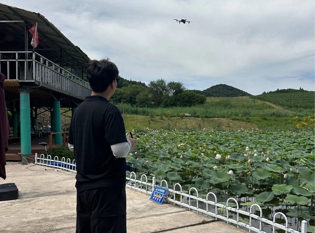 针对调研中发现的农业生产痛点,航空学院实践团队带来了无人机农田监测技术,在笠峰村的稻田上开展了一场别开生面的“科技实践课”。团队技术负责人操控着无人机完成低空巡航后,通过数据处理软件生成农田热力图,向围观村民讲解作物生长状况。