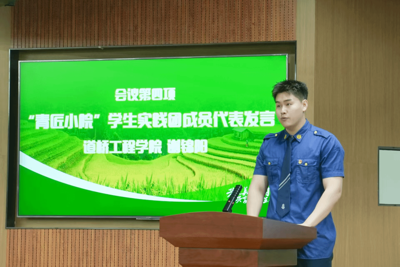 道桥工程学院谢锦阳同学作为“青匠小院”学生实践团成员代表发言。他表示,很荣幸能够参加此次暑期“三下乡”社会实践活动,在接下来的实践中,实践团成员们将牢记使命,不怕吃苦,充分发挥专业特长,为乡村发展贡献自己的智慧和力量;同时,也将珍惜这次难得的机会,虚心向群众学习,在实践中锻炼自己,提升综合素质,展现交院学子的良好精神风貌。