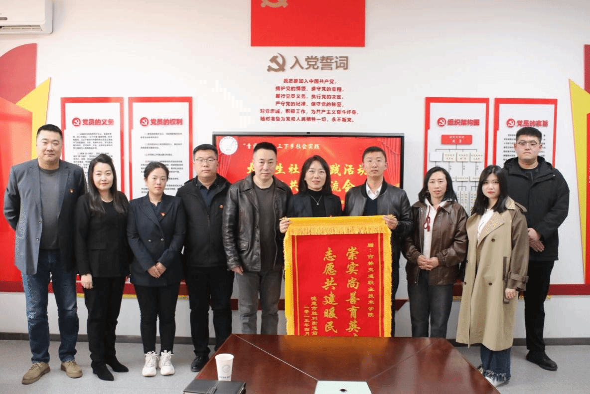 为感谢吉林交通职业技术学院的长期支持,前进社区向我校赠送“崇实尚善育英才,志愿共建暖民心”锦旗。